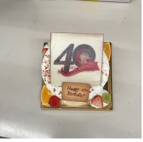 誕生日ケーキ 2025.09.24 ボウリング仲間の美女3人(もう一人は投球中) から74歳の誕生日プレゼントを頂きました。 ニシカワバンド40周年記念ロゴマーク入りです もったいなくて食べれません(;^ω^) ありがとうございました!!! ニシカワバンド 主宰 西川哲司